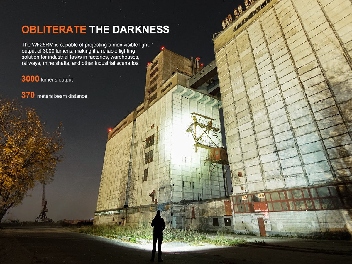 The Fenix WF25RM sets a new standard for duty lights with its cutting-edge design and versatile features, making it a top choice for professionals in specialized operations. This powerhouse delivers an astonishing 3000 lumens of white light, reaching over 1200 feet, while also offering a 365nm UV light with 500 mW of power which is ideal for tasks like non-destructive testing and leak detection.