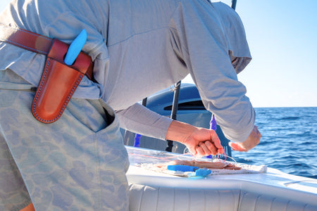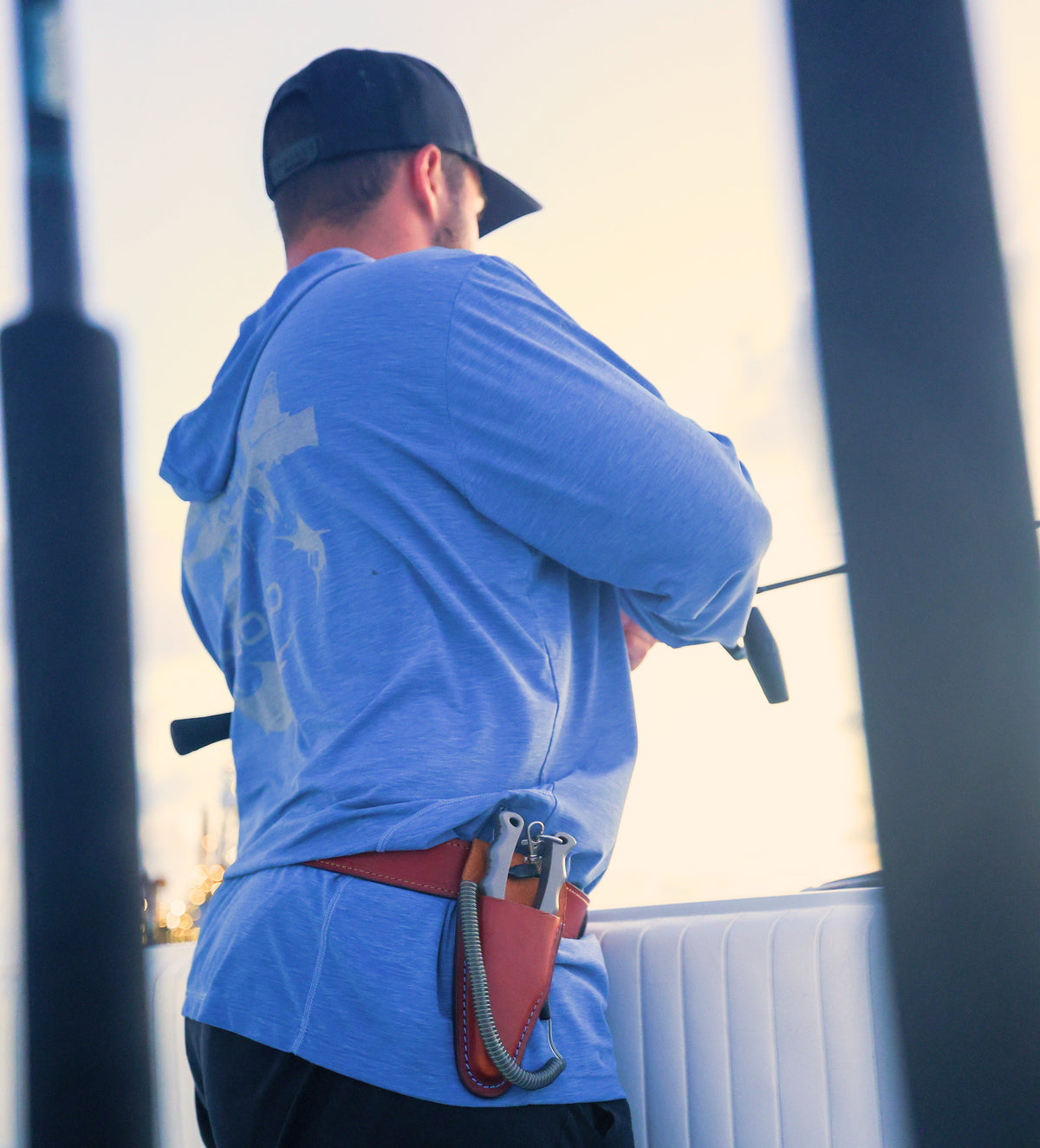Intentionally designed with Velcro for quick and easy on-and-off when duty calls, this belt is meant for every serious offshore angler. Slap it on when its time to fish, rip it off when its time to run to the next spot, repeat. The belt is made of 100% genuine cow leather, so it will wear in nicely to your fit. It pairs perfectly with both the SORD Leather Tool Sheath and the leather plier sheath included with SORD Titanium Pliers, and will fit anything else you could imagine attaching to it on your hip. Stop wearing your dress belts fishing. Be done with cheap plastic buckles on your waist. Wear a real fishing belt, a SORD Leather Tool Belt.