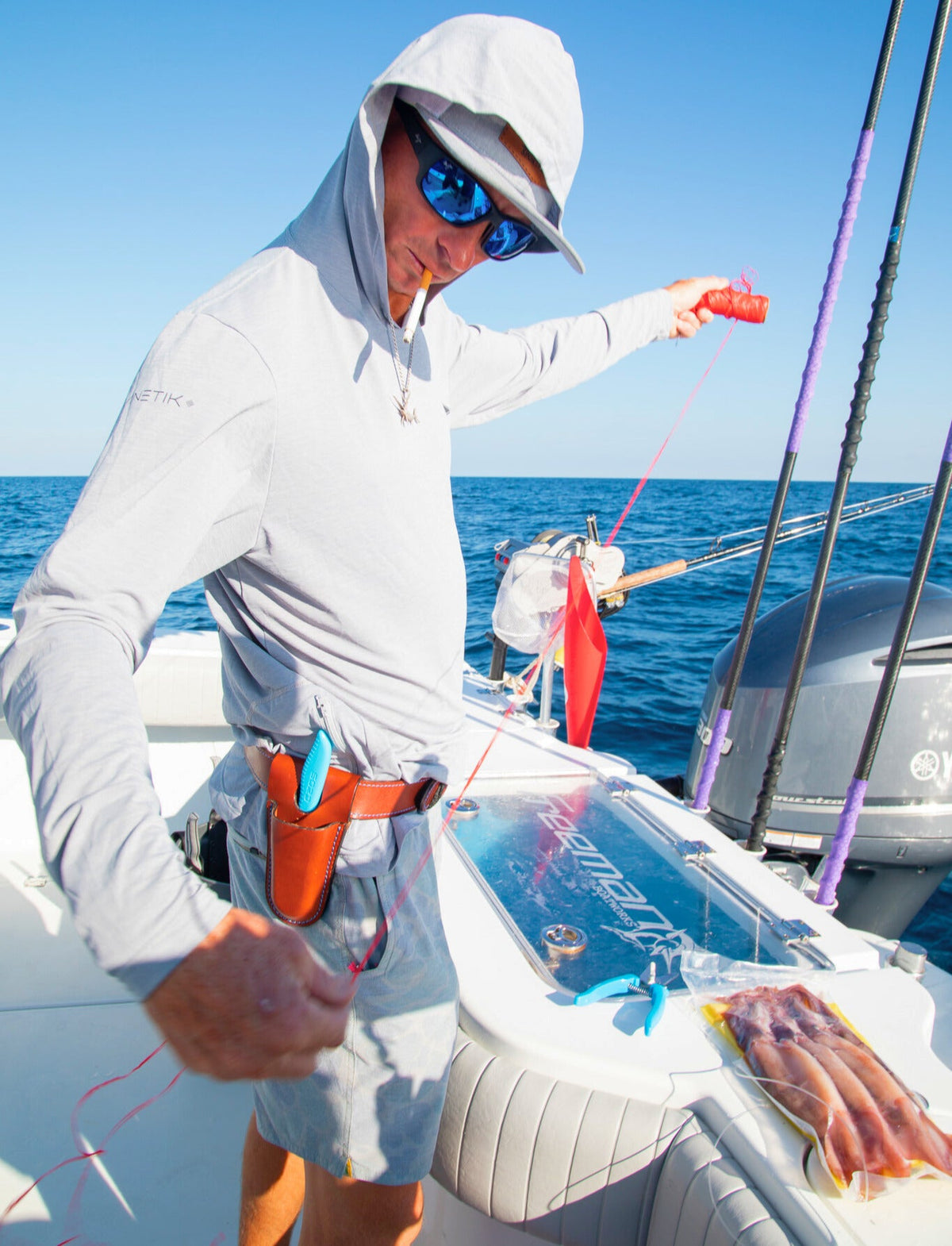Great fishermen deserve great tools, and great tools deserve a great home. Picture this, the bite just got hot, the deck is operating in organized chaos, things seem to be moving 1000 miles an hour, and in the blink of an eye you need your pliers, your mono nips, or your rigging knife right now or bites will be missed, fish will be lost, and the day could go south. Where are your tools? They don't deserve to be bouncing around in a compartment or rested on the gunnel ready to be knocked into the deep end. You don't deserve that after the work you've put in to get to this point. You deserve to have your tools securely on your hip, no matter the shorts you're wearing, belt or no belt. Your entire party will thank you for having your tools accessible when you need them most. And after you get the job done, just unclip the sheath from your shorts and grab that coldest beer in the cooler. You deserve it.