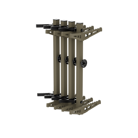 Sold in packs of four (4) or as a single stick, these 17" climbing sticks should get you anywhere from 10-12 feet up if placed moderately. The bottom step comes equipped with a buckle strap to hold all four together for easy organization and stacking. The aluminum V-Bracket locks into tree bark for a solid, silent hold even in the coldest temperatures.