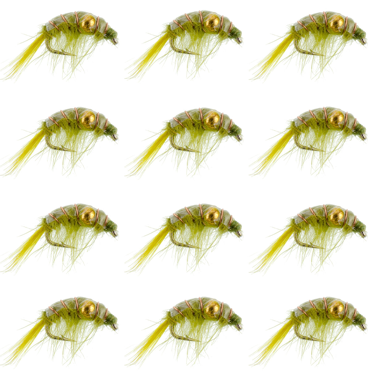 Olive Beaded Shrimp Scud Pattern - 1 Dozen Size 12 - Tailwater Lake Fly Fishing Nymph Flies