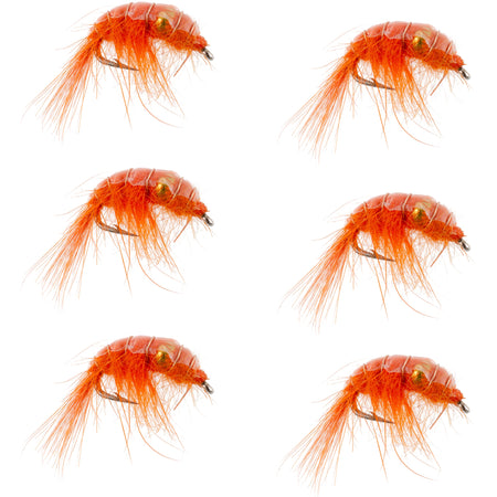 Set of 6 - Hand tied Orange Big Horn Lee's Ferry Shrimp flies Hook Size 12