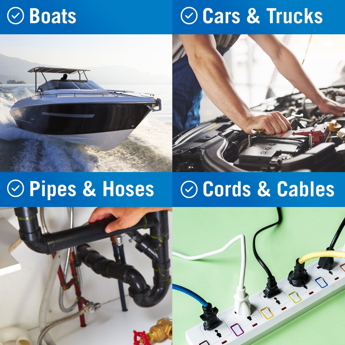 • HEAT & CORROSION RESISTANT: Our self fusing tape resists corrosion and extends the useful life of items being repaired. This silicone tape for plumbing creates a water-tight seal and works to fix leaks. Our ultra-strong, high temp silicone rubberized tape can be used to fix car engines, water heaters and more! This self sealing tape is extremely versatile and perfect for emergency repairs around your home, boat or car. Also works great as garden hose tape and tape for pipe leaks!