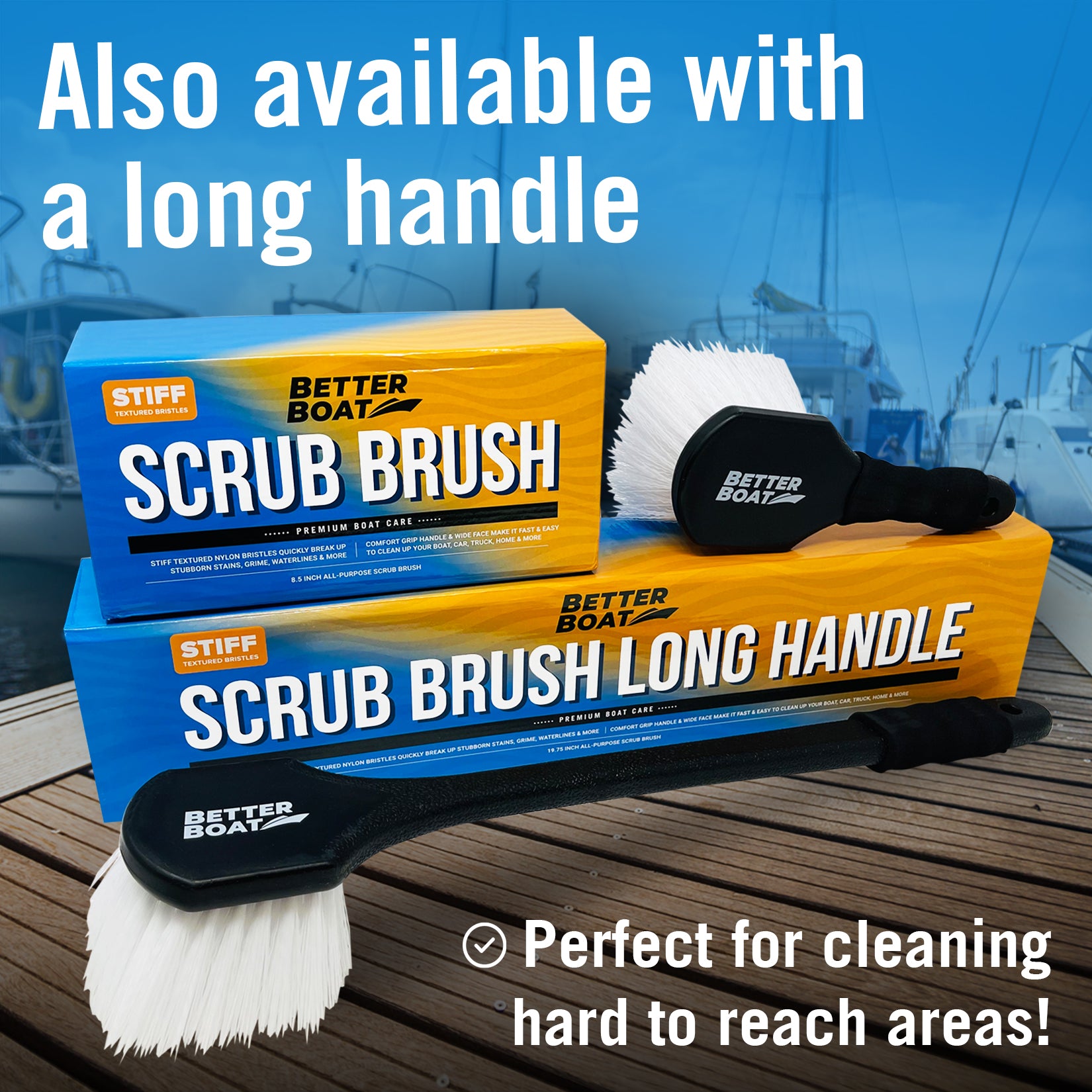 • BREAKS UP STUBBORN STAINS: Our premium marine-grade plastic scrub brush features stiff nylon bristles that quickly break up stubborn grime, grease and more. This nylon bristle scrub brush is perfect for deep cleaning heavily soiled, durable surfaces leaving them spotless. Our stiff nylon bristle brush works great to remove waterlines on your boat, build-up on decks and tackles stained grout. This heavy duty scrub brush is also ideal for cleaning up your car, RV, trailer, rims and tires!