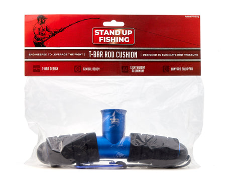 The Stand Up Fishing "T-Bar Rod Cushion is the ultimate combination of a rod cushion and a traditional fighting belt. Engineered to leverage the fight, the T-shaped design distributes the pressure exerted from your rod butt, stopping the rod from digging into your body. With comfortable foam padding, there will be no more bruises! Like any standard fighting belt, the "T-Bar Rod Cushion" has a pin to lock into the gimbal of your rod. The angler has the option to place the rod on either leg or lower belly during the fight. Unlike traditional foam cushions, the "T-Bar Rod Cushion" is constructed with strong, lightweight aluminum that is built to handle billfish, tuna, mahi, grouper, tarpon and everything else in between. Bulky fighting belts are now a thing of the past! Go Stand Up & Fish!