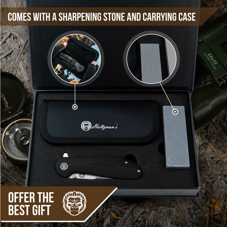• ✅ THRILL A NATURE ENTHUSIAST WITH A GIFT TO REMEMBER: Spoil a loved camper, hunter, fisherman or backpacker with the ultimate Folding Pocket knife. Offered in the attractive Gift Box, this outdoor knife makes the best gift!