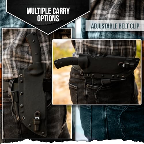 • ✅ ENJOY NATURE IN MAX SAFETY: Set off camping, hiking, hunting or fishing with a premium bushcraft knife including a Kydex Sheath, Flint Rod with G10 handle, G10 Scraper, Paracord and Allen Wrench.